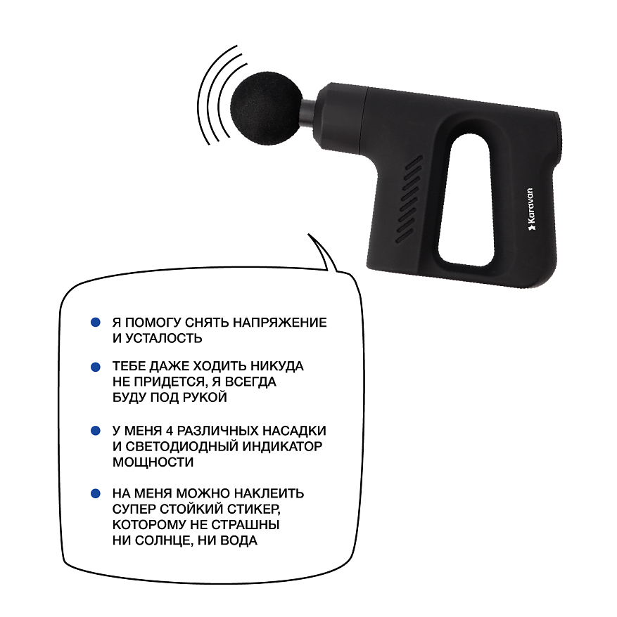 Перкуссионный массажер — забудьте о напряжении и усталости! Этот массажер работает так, как будто у вас есть собственный массажист, который всегда под рукой. Он расслабит ваши мышцы, как будто вы только что провели неделю на Бали, а не в офисе. И помните: «Когда жизнь дает вам лимоны, просто сделайте массаж!»