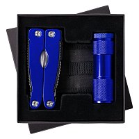фонарик - алюминий; мультитул: инструменты - нержавеющая сталь; рукоятки - алюминий; чехол - полиэстер; коробка - картон
